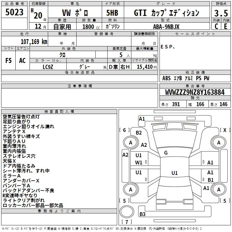 Volkswagen POLO с аукциона Японии TAA Kinki лот № 5023