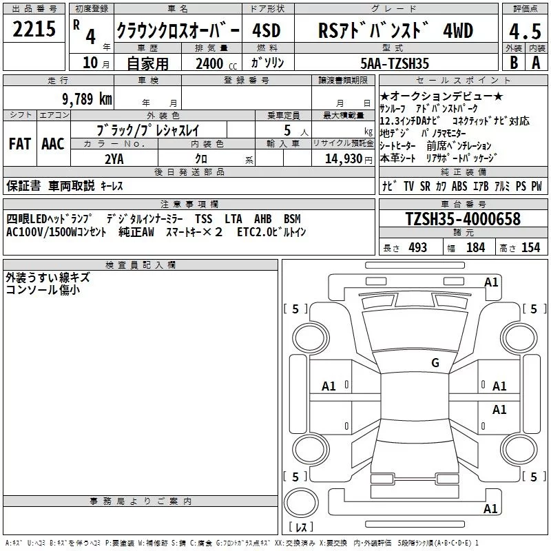 Toyota CROWN CROSSOVER с аукциона Японии TAA Kinki лот № 2215