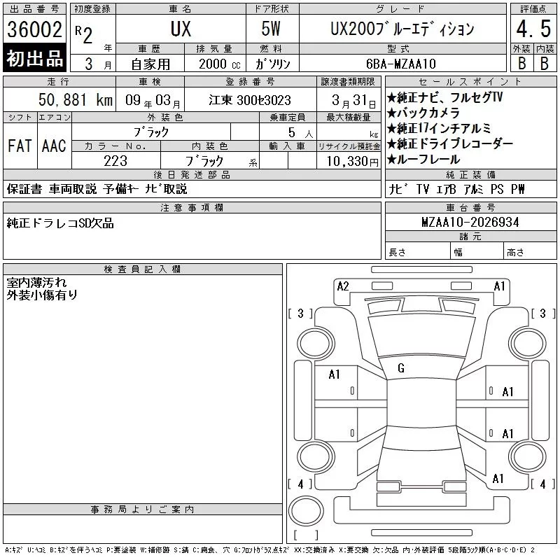 Lexus UX с аукциона Японии CAA Tokyo лот № 36002