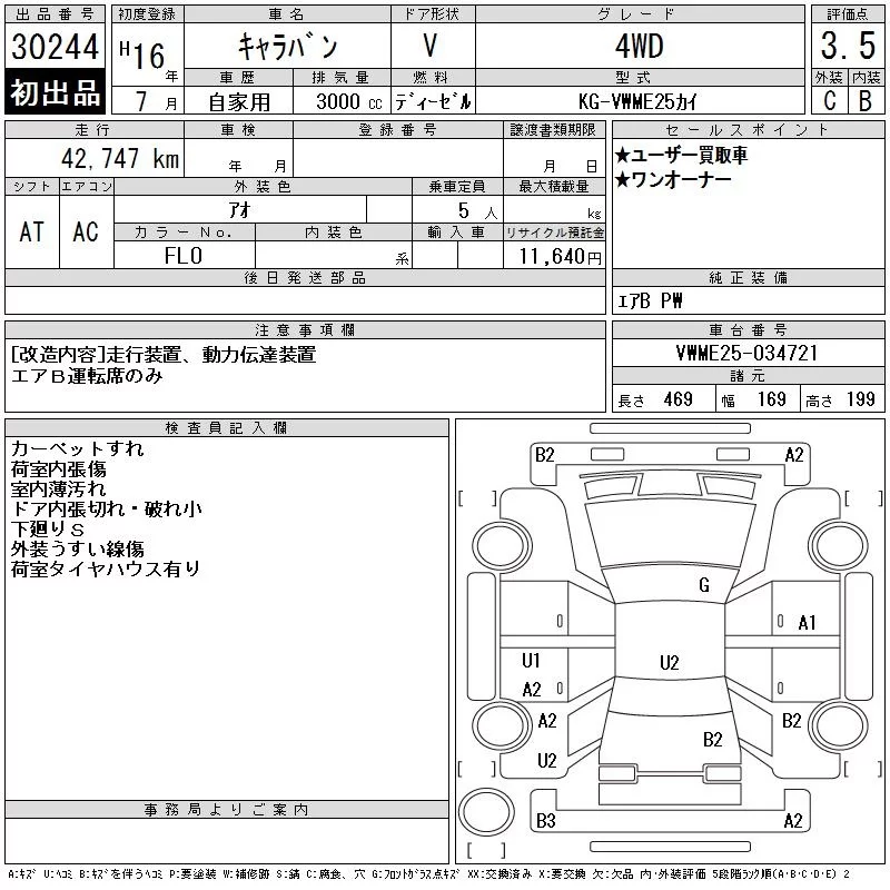Nissan CARAVAN VAN с аукциона Японии CAA Tokyo лот № 30244