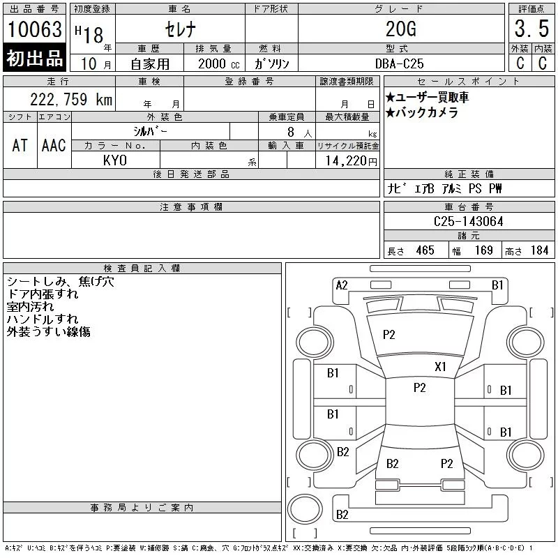 Nissan SERENA с аукциона Японии CAA Tokyo лот № 10063
