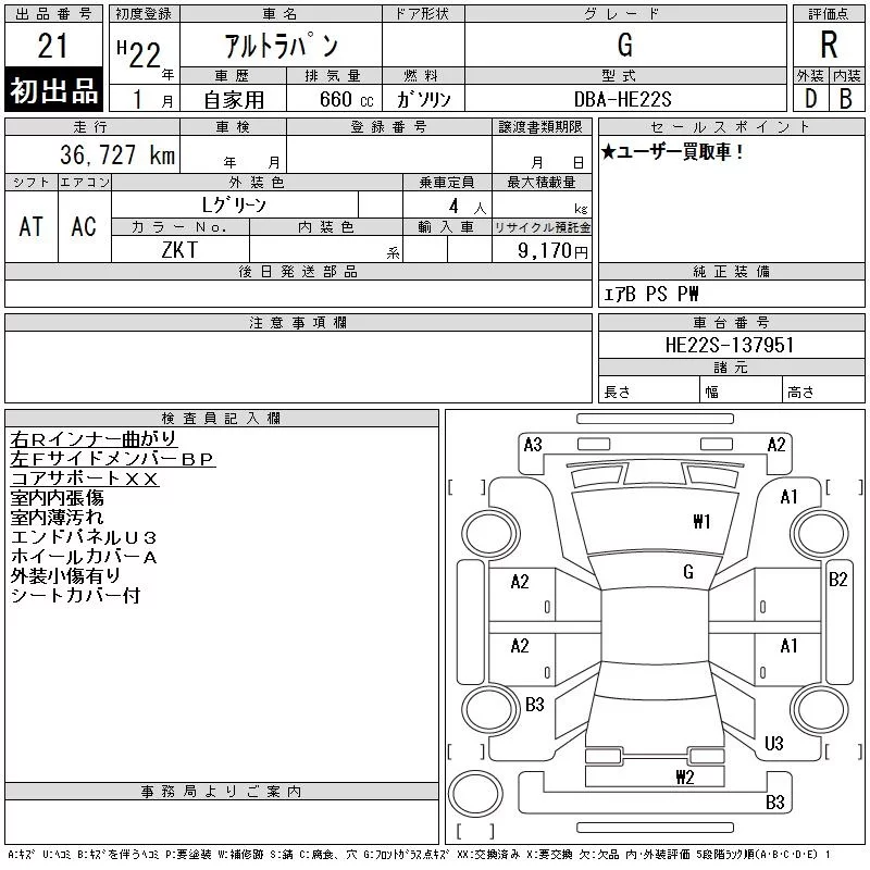 Suzuki ALTO LAPIN с аукциона Японии CAA Tokyo лот № 21