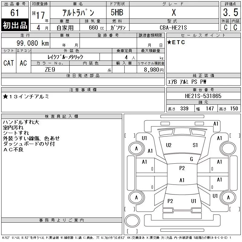 Suzuki ALTO LAPIN с аукциона Японии CAA Tokyo лот № 61