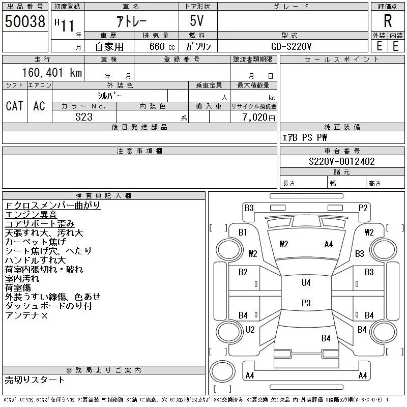 Daihatsu ATRAI VAN с аукциона Японии CAA Tokyo лот № 50038