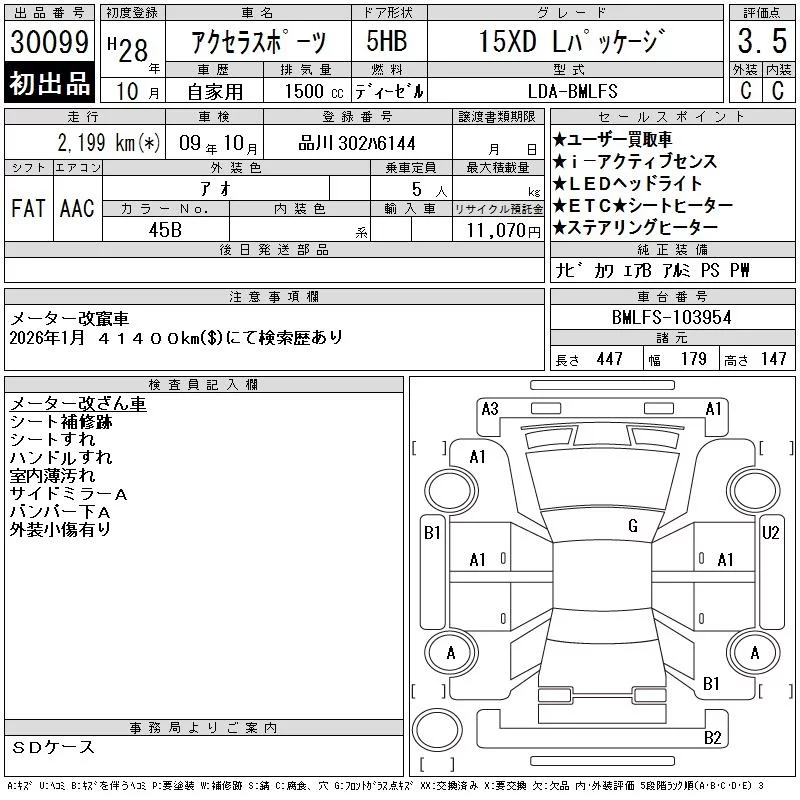 Mazda AXELA с аукциона Японии CAA Tokyo лот № 30099