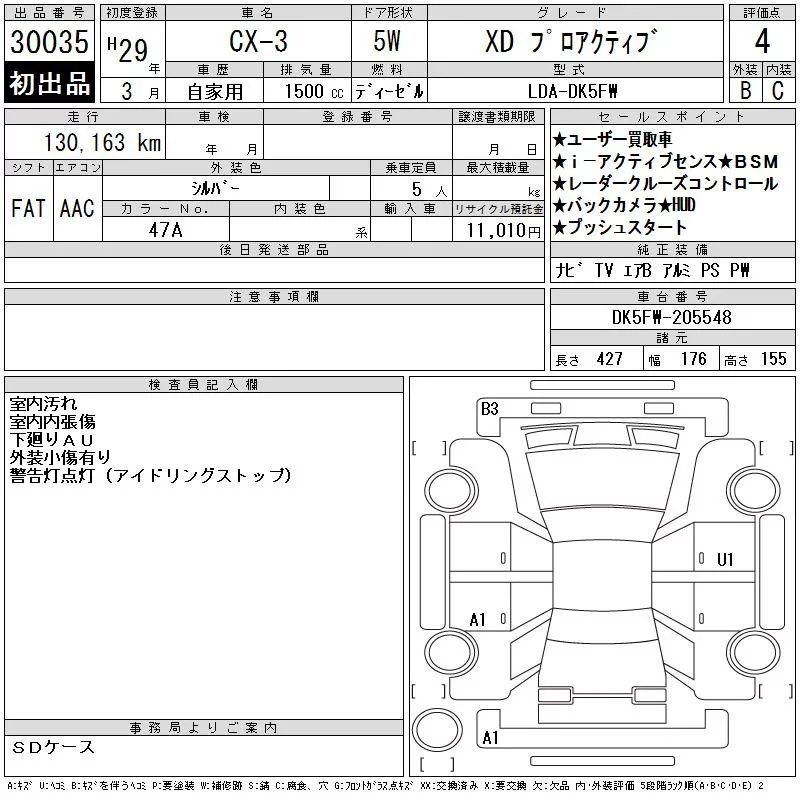 Mazda CX-3 с аукциона Японии CAA Tokyo лот № 30035