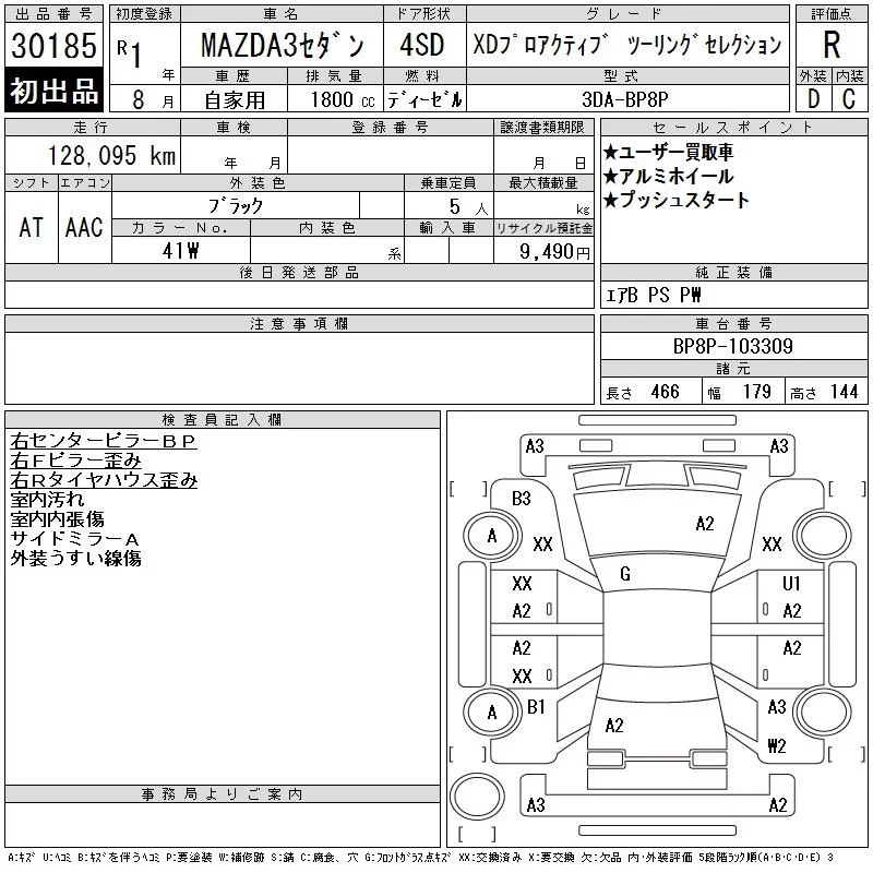 Mazda MAZDA3 с аукциона Японии CAA Tokyo лот № 30185