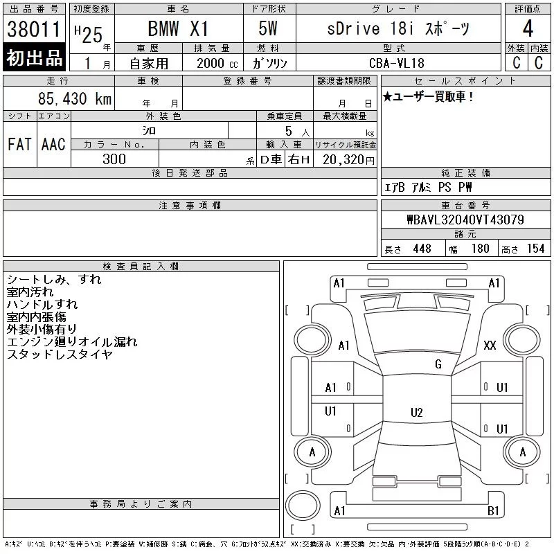 BMW X1 с аукциона Японии CAA Tokyo лот № 38011