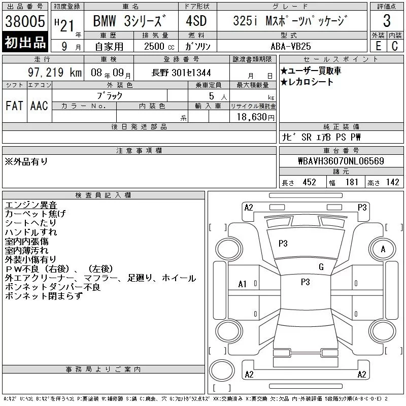 BMW 3-Series с аукциона Японии CAA Tokyo лот № 38005