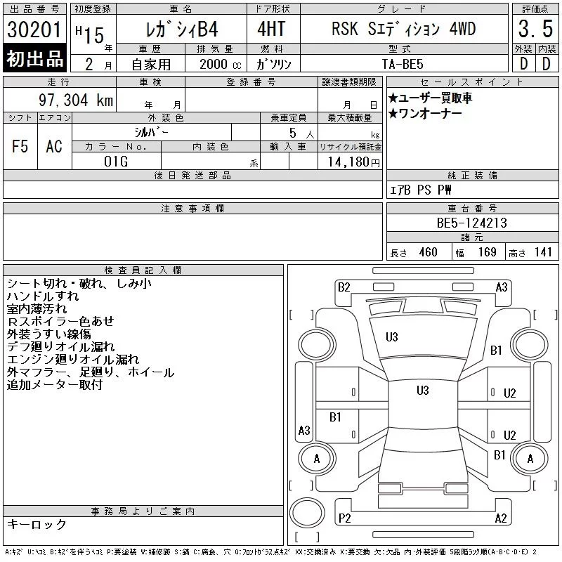 Subaru LEGACY B4 с аукциона Японии CAA Tokyo лот № 30201