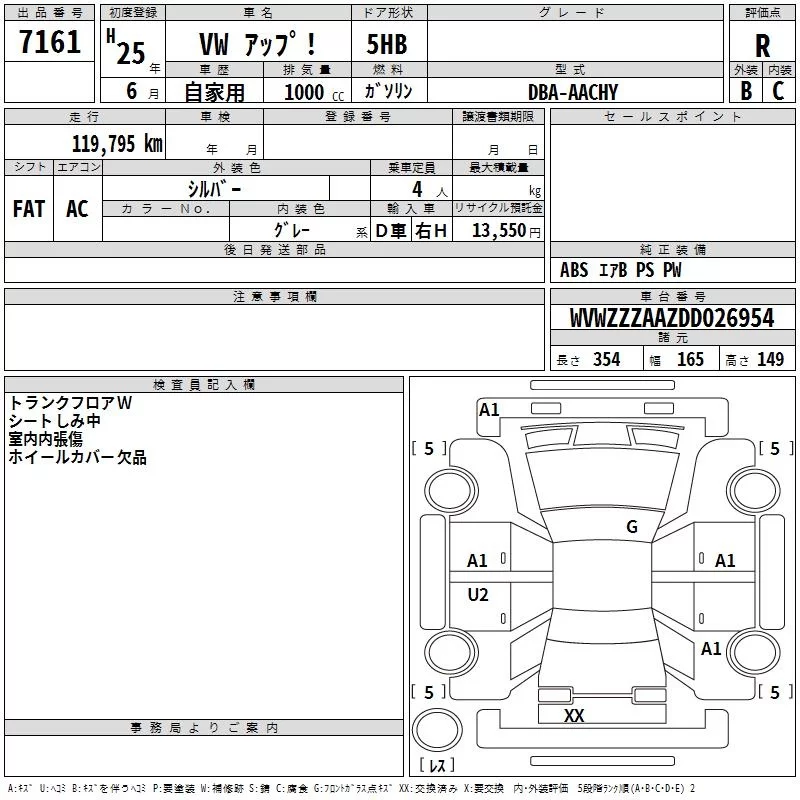 Volkswagen UP с аукциона Японии TAA Kinki лот № 7161