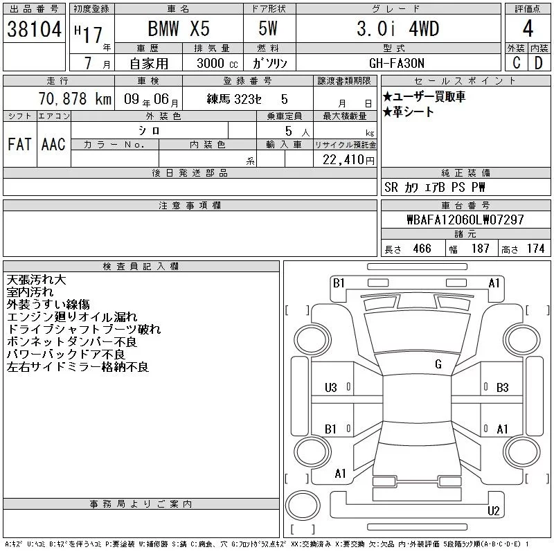 BMW X5 SERIES с аукциона Японии CAA Tokyo лот № 38104