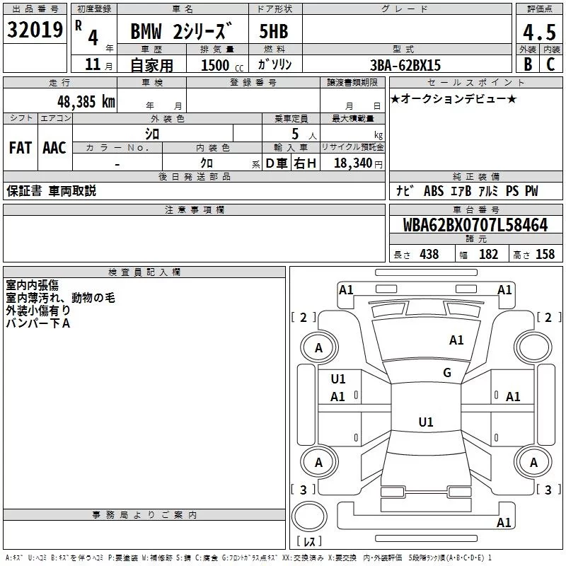 BMW 2-Series с аукциона Японии TAA Kinki лот № 32019