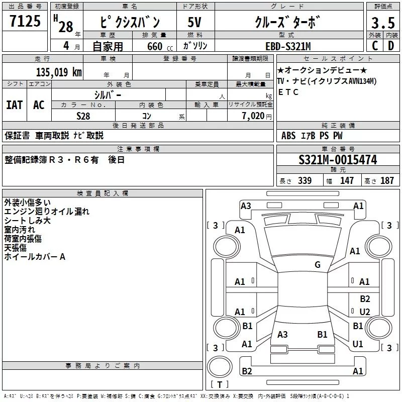 Toyota PIXIS VAN с аукциона Японии TAA Kinki лот № 7125