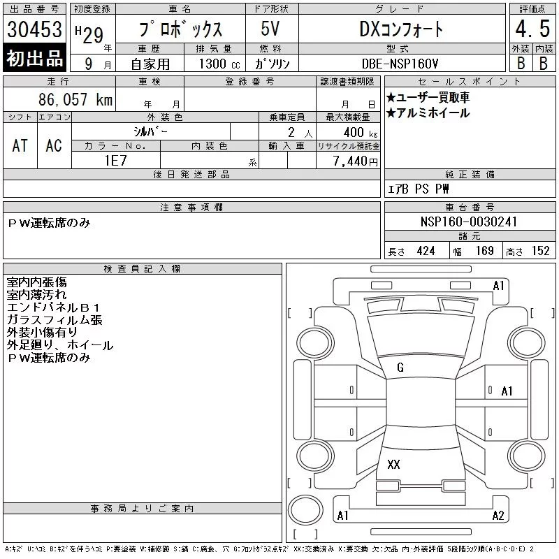 Toyota PROBOX с аукциона Японии CAA Tokyo лот № 30453