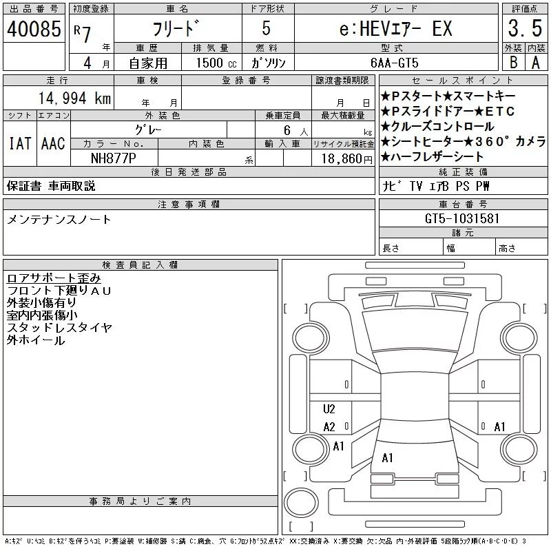 Honda FREED с аукциона Японии CAA Tokyo лот № 40085
