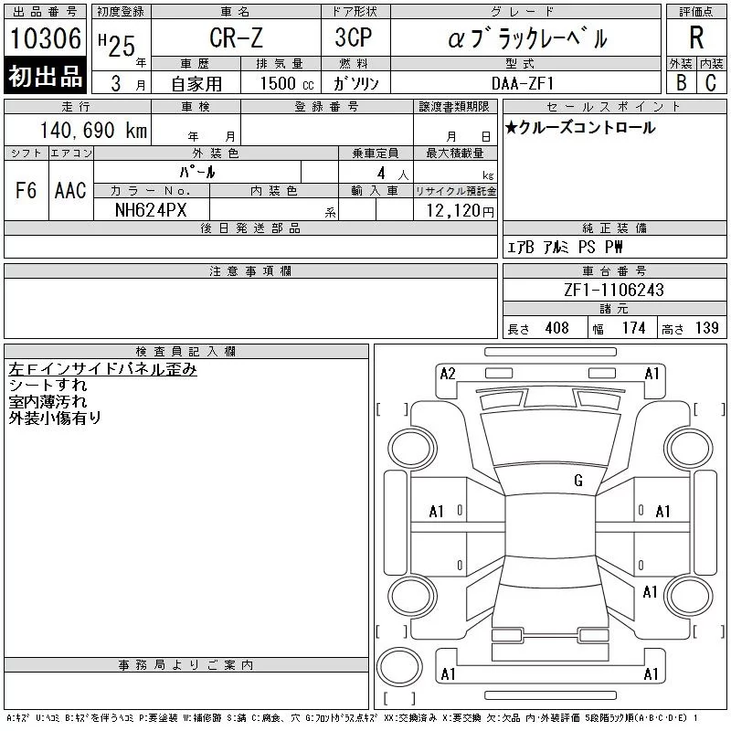 Honda CR-Z с аукциона Японии CAA Tokyo лот № 10306