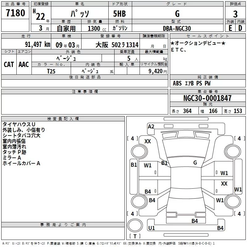Toyota PASSO с аукциона Японии TAA Kinki лот № 7180
