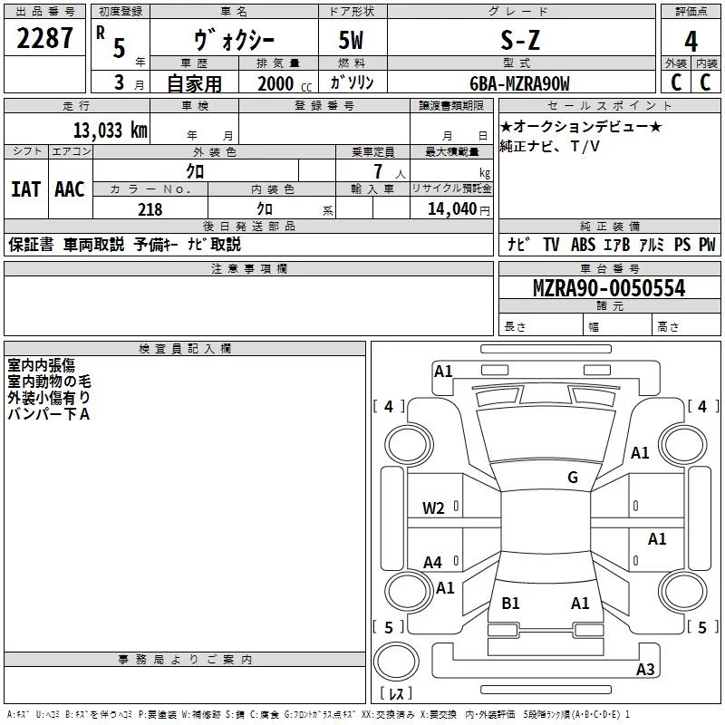 Toyota VOXY с аукциона Японии TAA Kinki лот № 2287