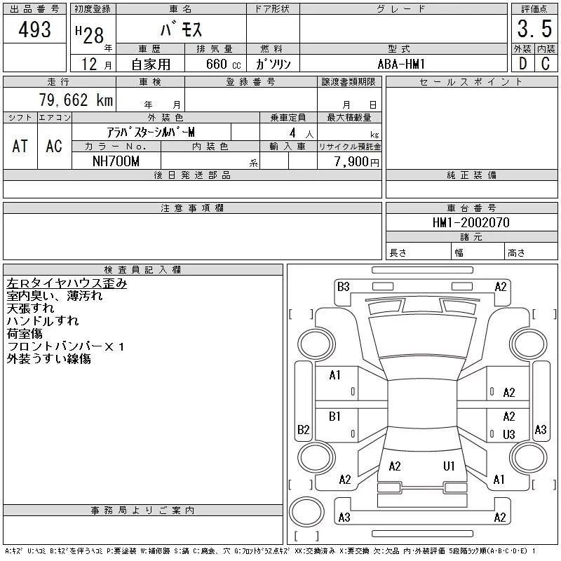 Honda VAMOS с аукциона Японии CAA Tokyo лот № 493