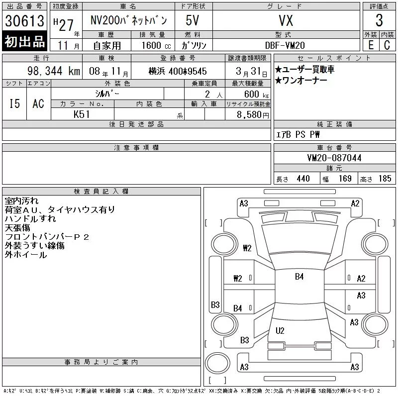 Nissan NV200 с аукциона Японии CAA Tokyo лот № 30613