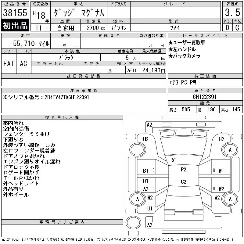 Dodge MAGNUM с аукциона Японии CAA Tokyo лот № 38155