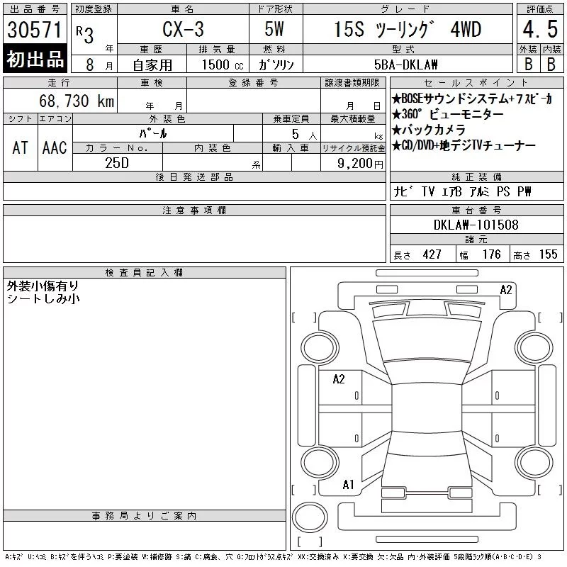 Mazda CX-3 с аукциона Японии CAA Tokyo лот № 30571
