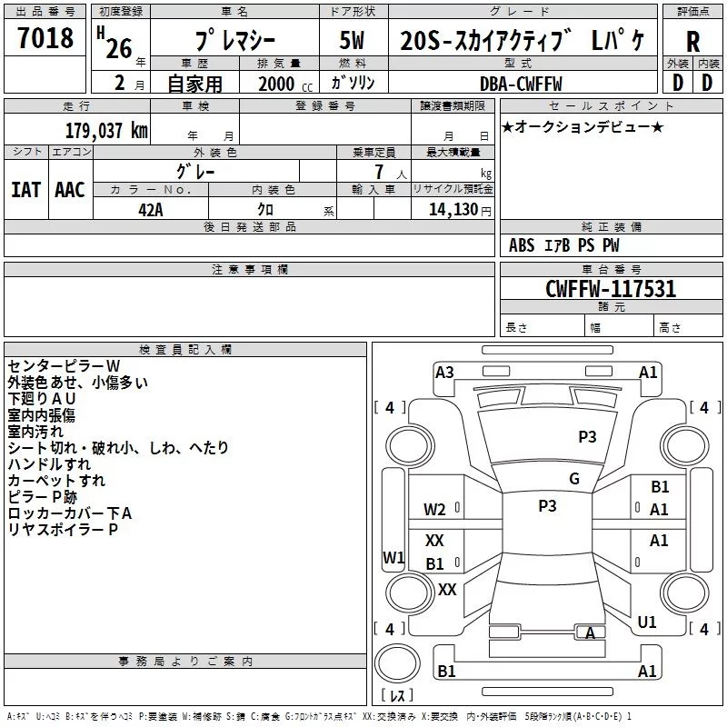 Mazda PREMACY с аукциона Японии TAA Kinki лот № 7018