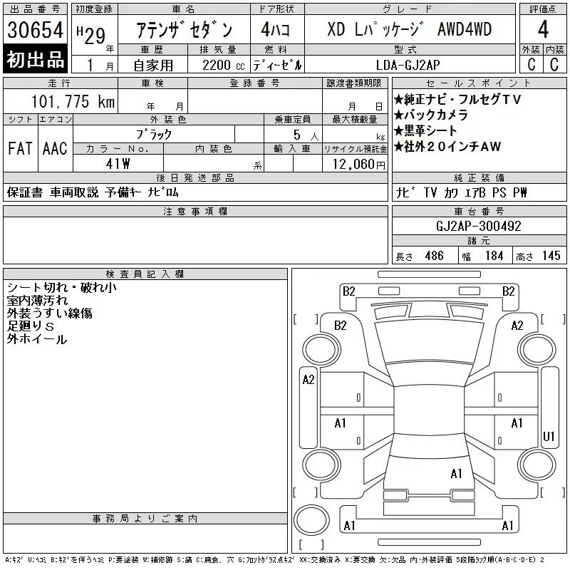 Mazda ATENZA SEDAN с аукциона Японии CAA Tokyo лот № 30654