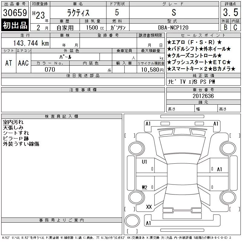 Toyota RACTIS с аукциона Японии CAA Tokyo лот № 30659