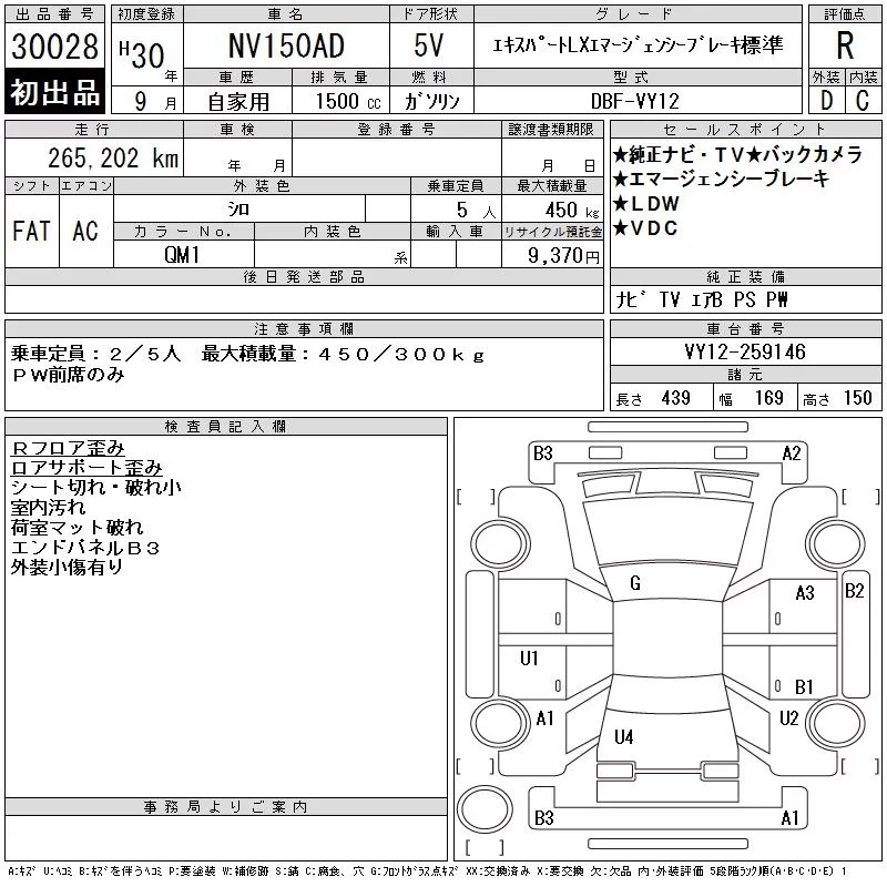Nissan AD с аукциона Японии CAA Gifu лот № 30028