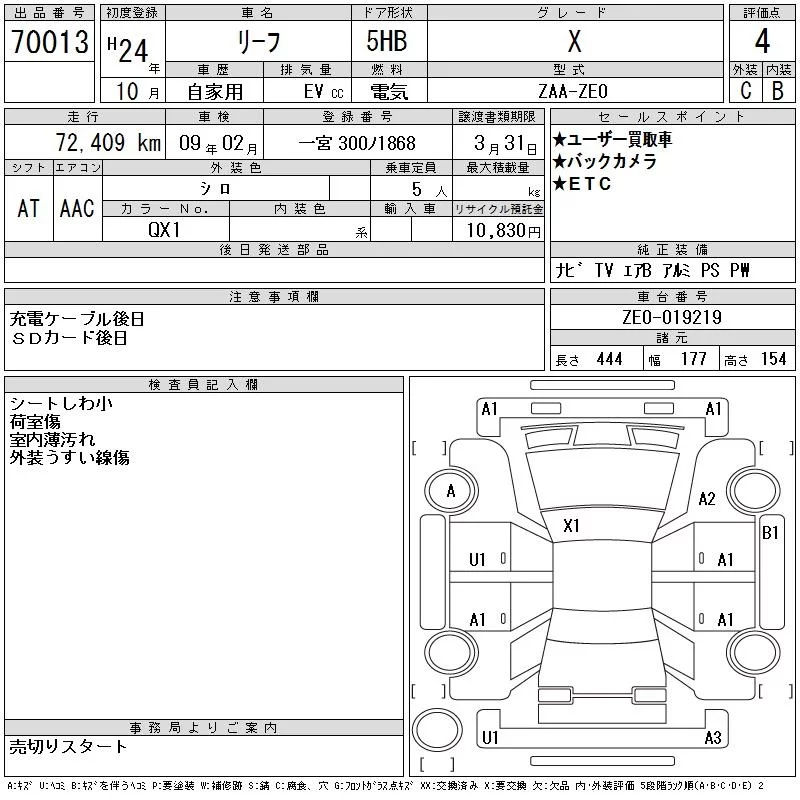Nissan LEAF с аукциона Японии CAA Gifu лот № 70013