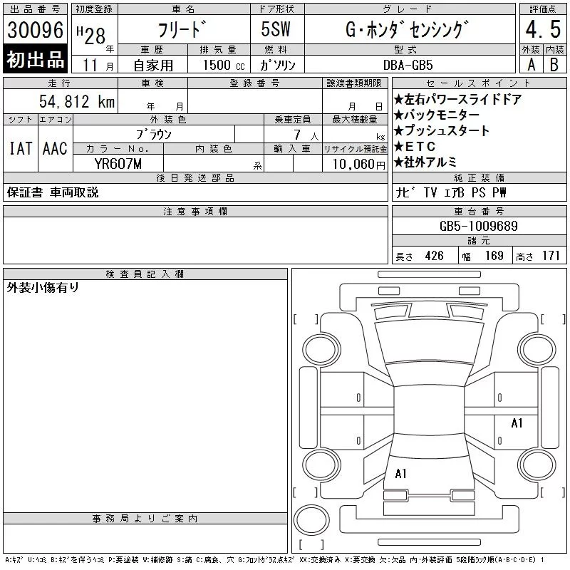Honda FREED с аукциона Японии CAA Gifu лот № 30096