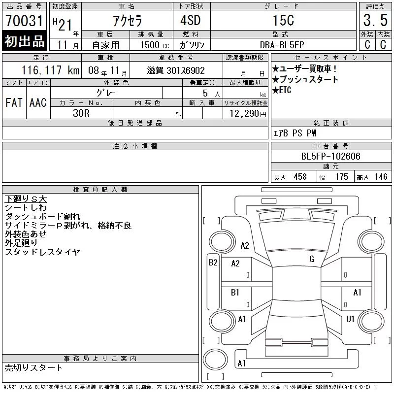 Mazda AXELA с аукциона Японии CAA Gifu лот № 70031