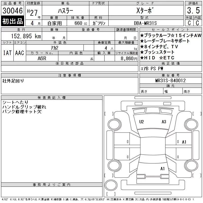 Suzuki HUSTLER с аукциона Японии CAA Gifu лот № 30046