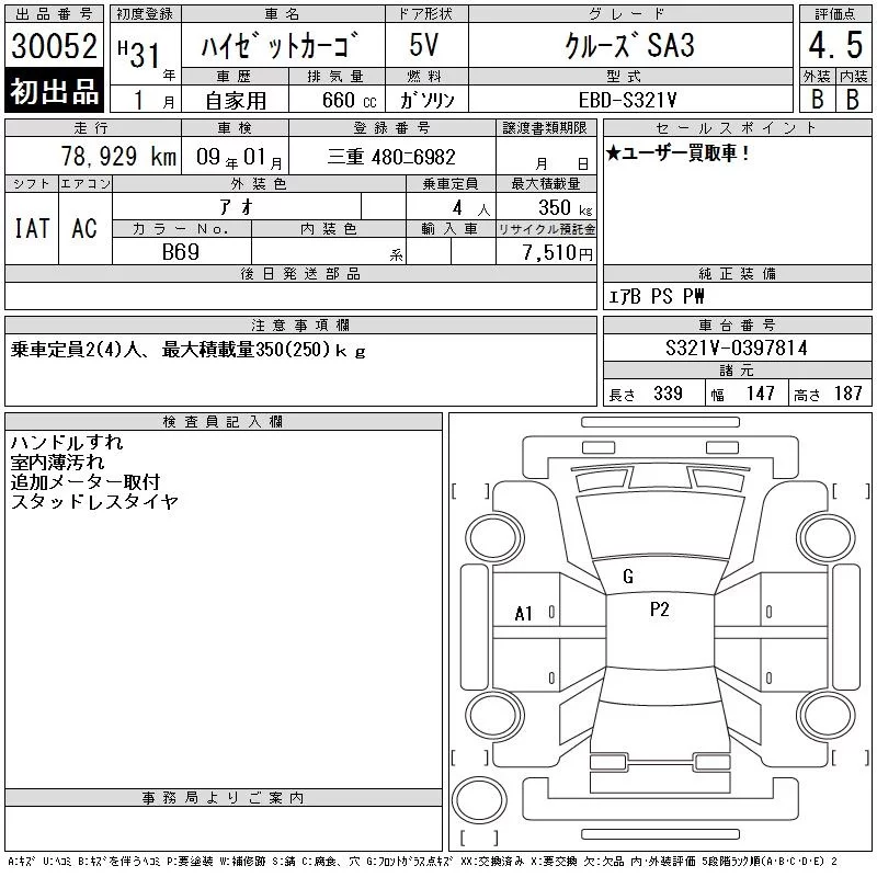 Daihatsu HIJET VAN с аукциона Японии CAA Gifu лот № 30052