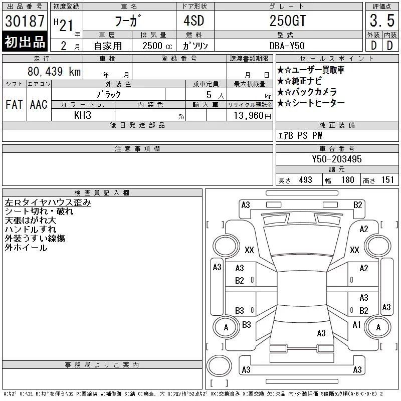 Nissan FUGA с аукциона Японии CAA Gifu лот № 30187