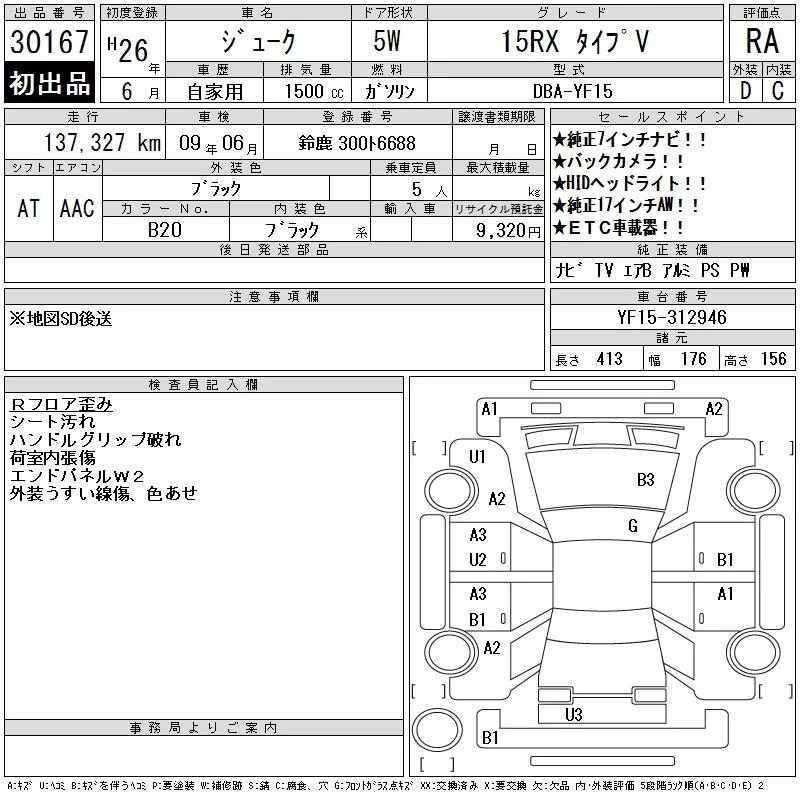 Nissan JUKE с аукциона Японии CAA Gifu лот № 30167