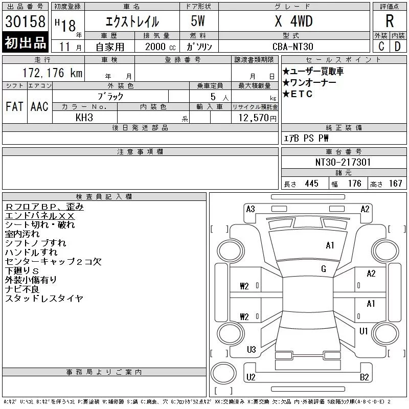 Nissan X-TRAIL с аукциона Японии CAA Gifu лот № 30158