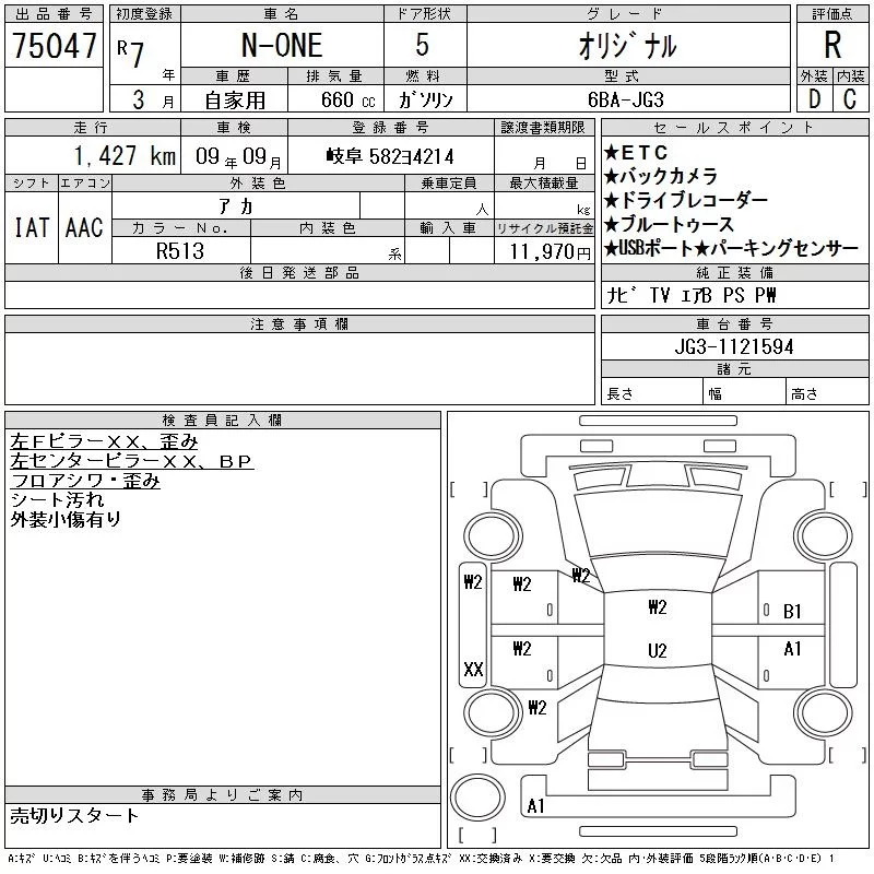 Honda N ONE с аукциона Японии CAA Gifu лот № 75047