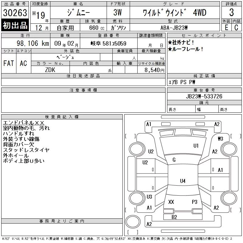 Suzuki JIMNY с аукциона Японии CAA Gifu лот № 30263