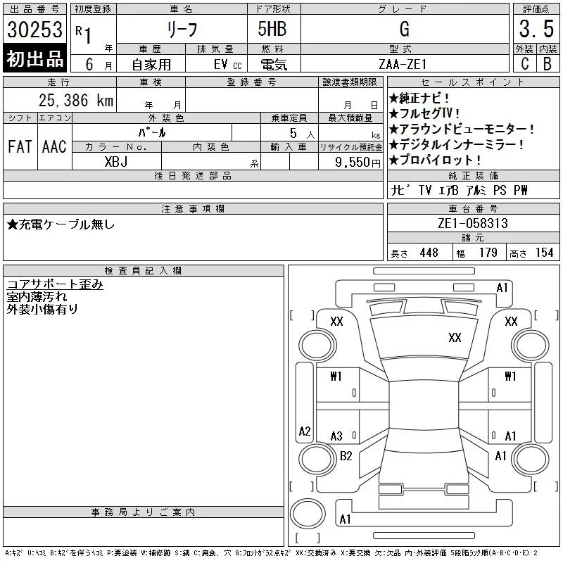 Nissan LEAF с аукциона Японии CAA Gifu лот № 30253