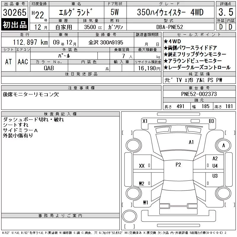 Nissan ELGRAND с аукциона Японии CAA Gifu лот № 30265