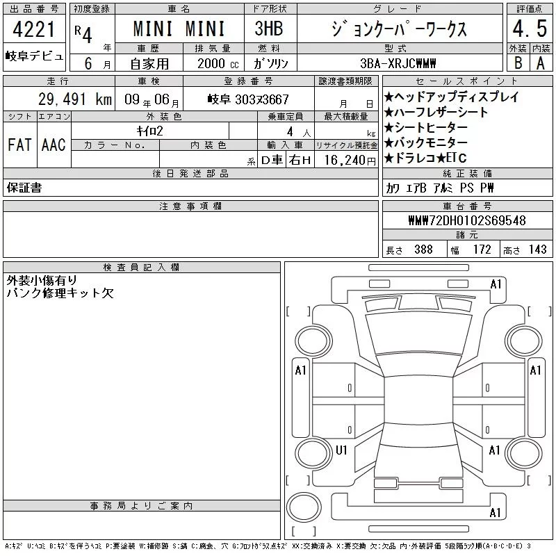 BMW MINI с аукциона Японии CAA Gifu лот № 4221