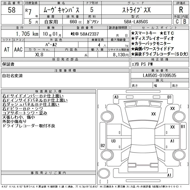 Daihatsu MOVE CANBUS с аукциона Японии CAA Gifu лот № 58