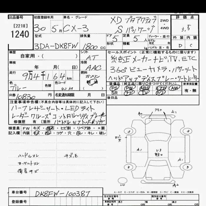 Mazda CX-3 с аукциона Японии JU Saitama лот № 1240