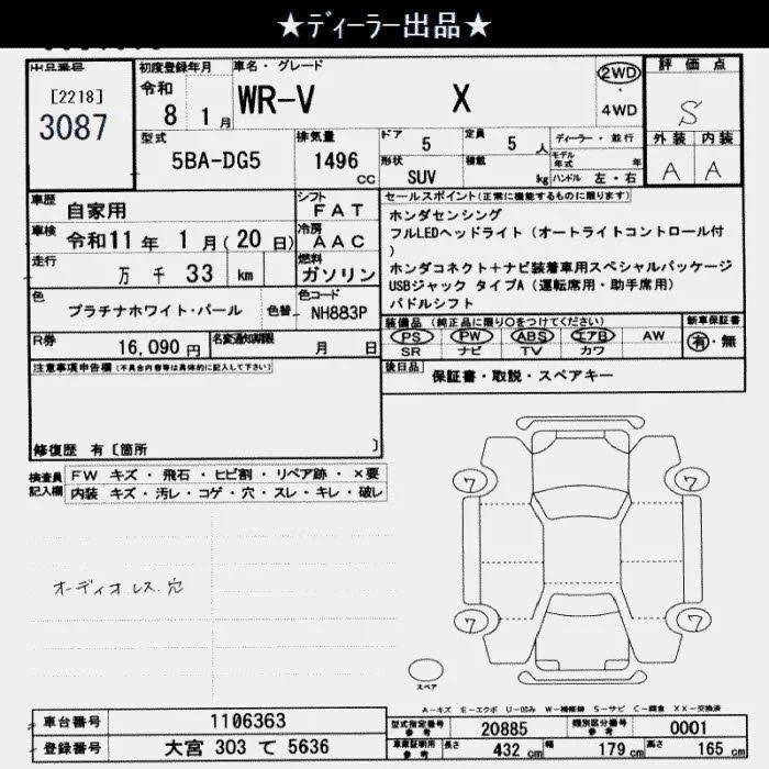 Honda WR-V с аукциона Японии JU Saitama лот № 3087