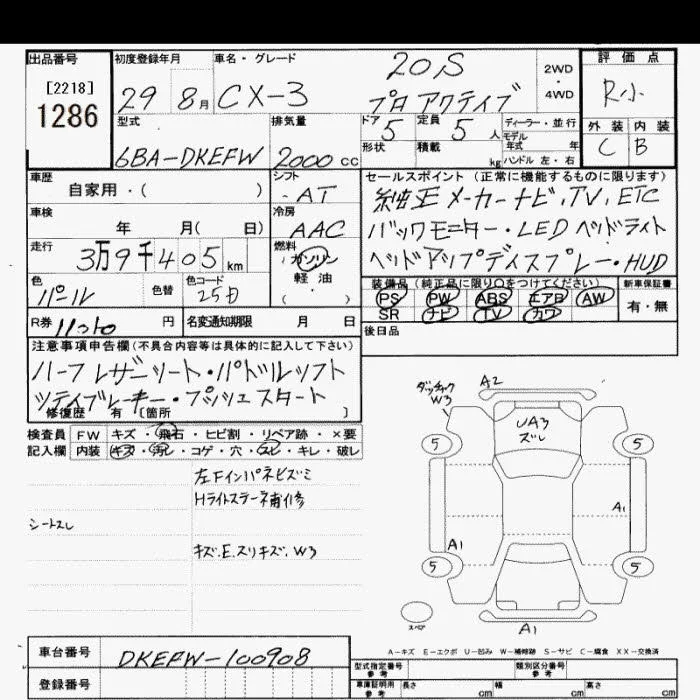 Mazda CX-3 с аукциона Японии JU Saitama лот № 1286