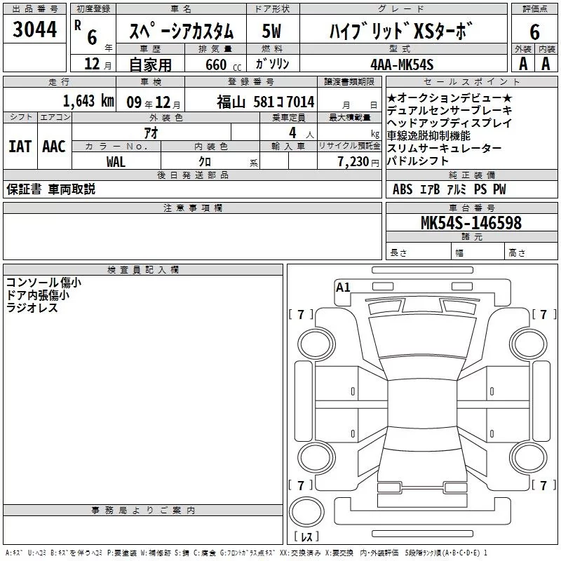 Suzuki SPACIA с аукциона Японии TAA Hiroshima лот № 3044