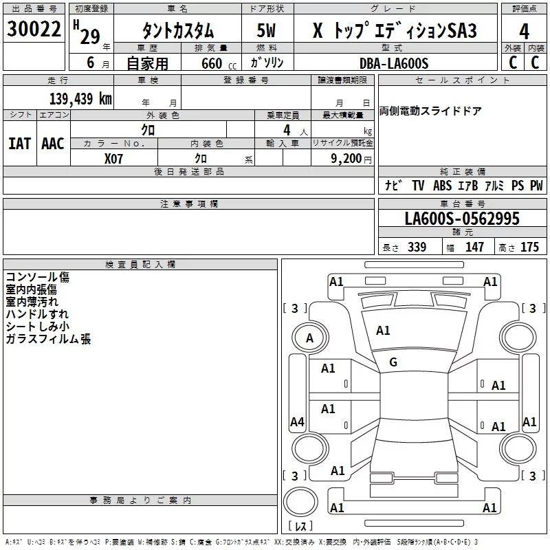 Daihatsu TANTO с аукциона Японии TAA Hiroshima лот № 30022